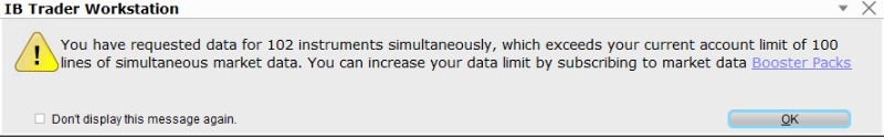 Another way to overcome the 100 market data lines is to purchase "booster packs" from IB.